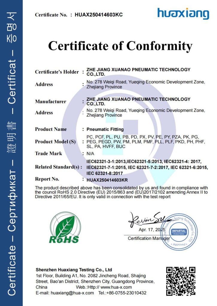 Our products have passed ISO 9001 certificate and other approval, and are strictly according to the internatinal standard process. With 10 years experience in pneumatic fittings field, we know your market and know how to make your business more profitable.